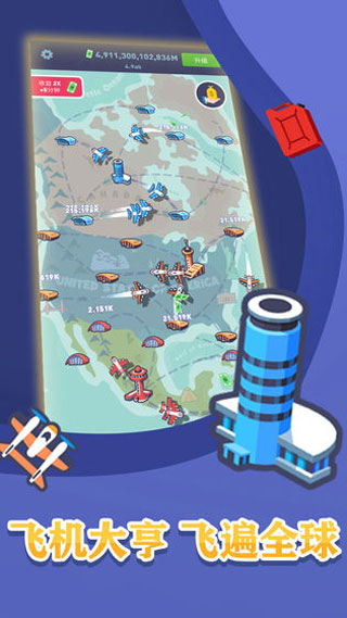 同时右上方的经验会逐级累计,点击控制塔还能购买新的飞机,提高飞机的收益,从而让你达到增加效益。