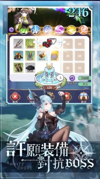 3、上半部分采取放置战斗的玩法,玩家角色会自动进行战斗闯关,抽取的装备会自动穿戴在玩家角色身上;
