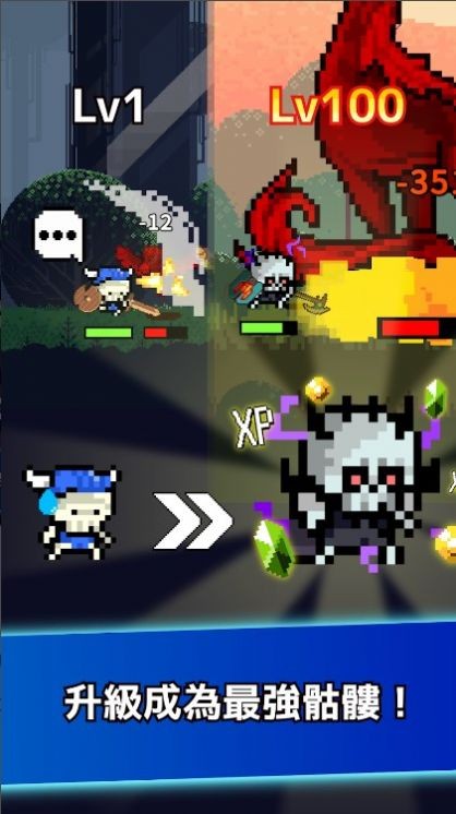 放置骷髅游戏手机版一款像素风格的休闲RPG游戏,玩家可以通过战斗解锁道具和线索,即使离线,你的骷髅角色也会自动战斗并获得经验和装备。体验自由度高的玩法,挑战各种关卡和BOSS。游戏包含丰富的关卡和怪物类型,提供免费的RPG冒险体验和极高的可玩性,为玩家带来创新有趣的内容!
