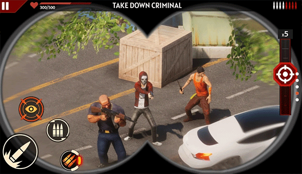 双手持着游戏屏幕,通过左右和上下翻转可以控制枪口的方向,移动到目标附近,再用右边的狙击镜,同样的操作可以控制瞄准的镜头,点击屏幕就可以射出子弹;另外习惯对于使用重力操控的小伙伴们,可以在设置内更改操作方式哟~~如果击中正确的目标则会有随着子弹射出过程的慢镜头演示。