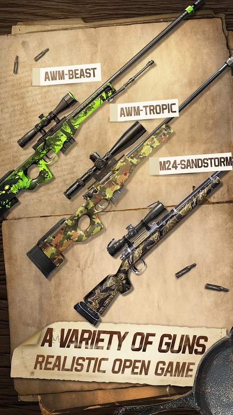 狩猎狙击手最新版是一款非常真实的打猎游戏,英文名也叫Hunting Sniper,在这里你可以来自全球真人玩家同台竞技,比赛分为三局两胜,根据每名玩家狩猎造成的伤害进行计算,得分最高者将获得丰厚奖金!