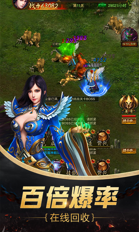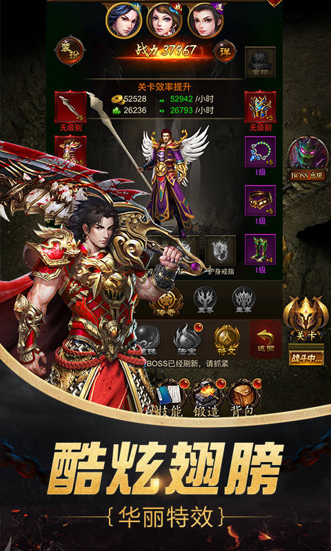 三、 丰富的游戏玩法内容(主城PK,翅膀,传世神装,全民BOSS,公会)
