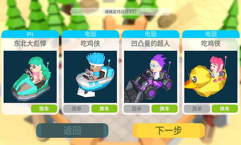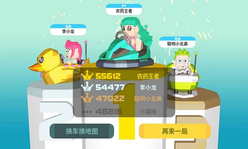 2、在单人游戏模式下你将和电脑控制的碰碰车们一同角逐,战胜它们可以解锁各种碰碰车。