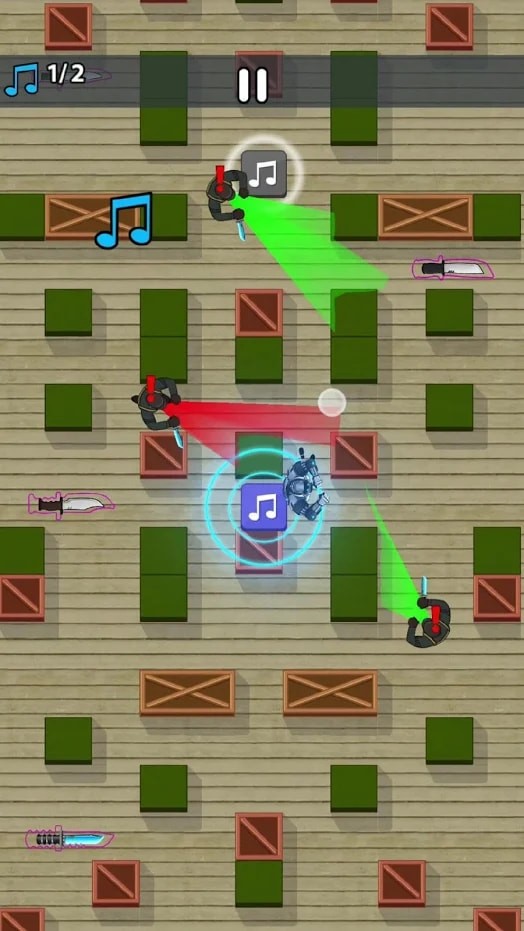 逃跑刺客作为一名强大的刺客需要偷偷潜入到敌人的被狗将其刺杀,只要能够将所有的音符集齐,就算是还有敌人,也算是完成了任务,所以潜行是第一要素!利用场景小心潜入,悄悄暗杀敌人,小心不要被守卫发现,玩法惊险刺激,超多关卡可以挑战,每一个关卡中都会有大量敌人在四处巡逻,要想顺利过关不是一件容易的事情,只有最强大的刺客才能闯过所有关卡。