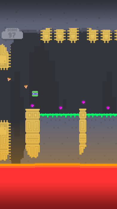 神庙跳跃安卓版是一款像素风的跳跃类游戏。不只只是跳跃而已,游戏添加了很多有趣耐玩的元素,像素鸟,忍者龟头和各种角色等你来解锁。玩家将在一个充满熔岩的神庙中冒险,你需要在柱子间跳跃来收集宝石,按住屏幕可以使主人公跳的更远。