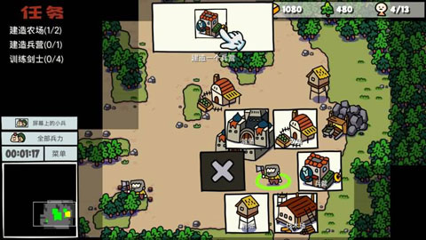 一切准备就绪之后,试着修建一个农场,没有粮食的产出,工人是干不了活的,现在就建造一个农场吧,农场的图标在下,选择一名工人并选定建造图标即可。