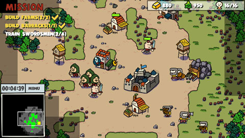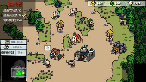 - 在开始还有4名工人就在你身边;- 让他们从树矿和木材收集黄金;