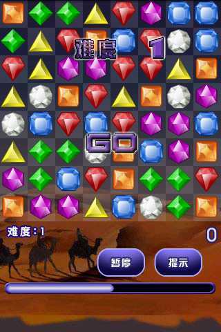 宝石对对碰,一款不错的对对碰小游戏,画面非常精致.元素都是非常闪亮的钻石宝石。游戏中将同样的宝石横竖三个连在一起就能消除,看看你是不是一个对对碰高手,快来试试你能得多少分吧。