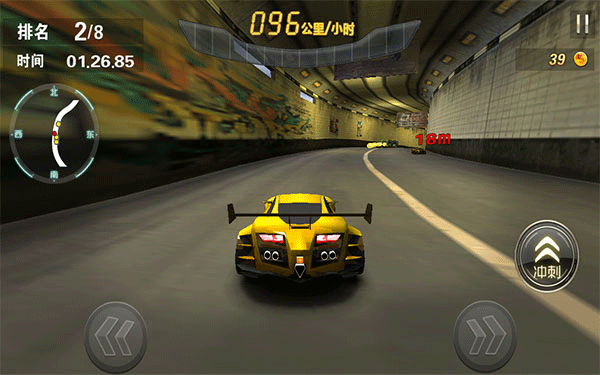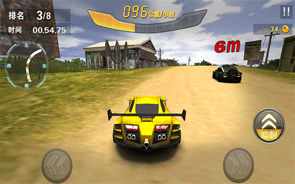 游戏支持触屏和重力感应两种操作方式,比赛开始之时可以进行设置。与大多数的赛车游戏相同,游戏中,玩家所要做的是超越所有车辆,达成不同的关卡任务。赛道上有加速带和氮气瓶,利用这些可以瞬间提升速度。