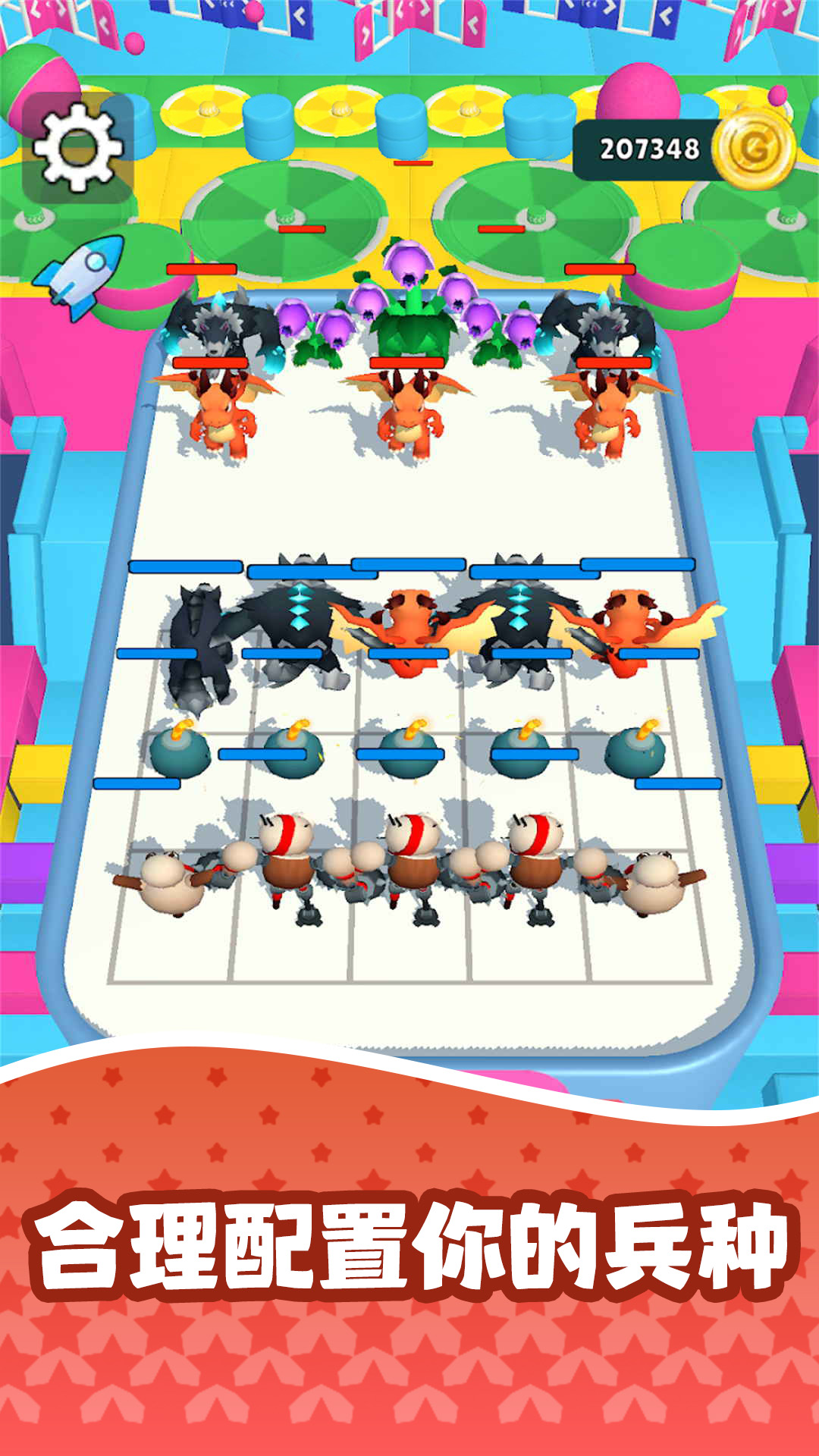 纷争战线游戏结合了合并、放置、闯关等各种丰富且休闲的玩法,可以召集合并怪物一起来打败不同的对手。