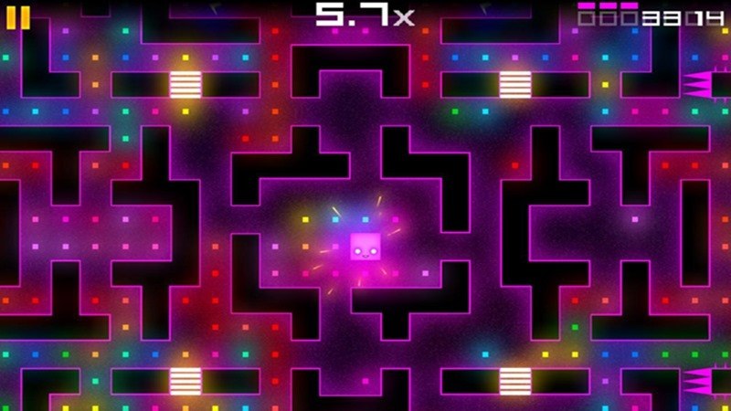 这款游戏名为《炫光吃豆人》,咋看之下颇有经典的Pac-Man的感觉。玩家需要在一个个不同样式的迷宫中,获得全部的光点,并且并开红色的方块。而除了避开红色的方块外,还可以借助其他的手段来消灭或者困住这些红色的方块。