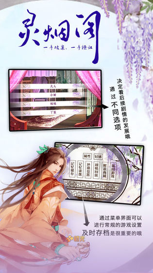 灵烟阁是一款古风恋爱类角色扮演手游,游戏结合虐 恋、推理、悬疑、亲情等要素,讲述了一个现代妹子穿越古代当情报侦探的故事,在追查谋杀案的过程中,和不同类型的男主展开一段段逗比的恋爱经历。