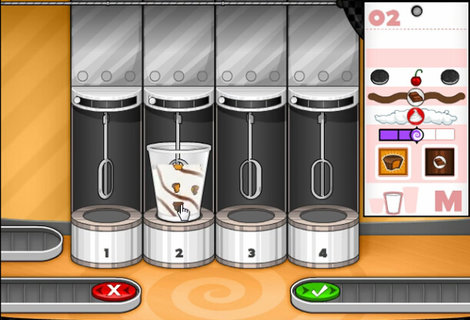 制作甜点:你需要按照客户的要求选择杯子的大小和口味,果酱的搅拌程度要刚刚好,观察搅拌计时表。在把鲜奶油和客户要求的配料放到圣代的顶部就完成了。