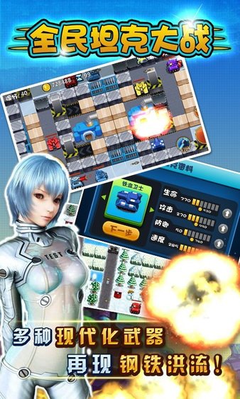 全民坦克大战内购破解版是以机甲坦克为主要题材的动作射击手游,坦克的种类比较的多样,进行不同的射击场景可以有着不同的操作,怀旧色彩非常的浓厚,关卡也很更多~感兴趣的朋友快来本站体验吧!