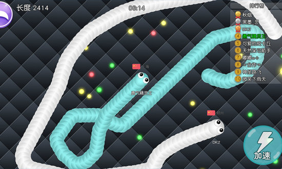 1.如果你的头碰到另一条蛇,你会爆炸游戏结束,反之,如果你在别的蛇碰上你,那么他们会爆炸,就可以吃了他们的遗体
