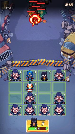 1、关卡中都是由各种各样的英雄组成。点击相邻同色的方块,消除通关,完成任务。