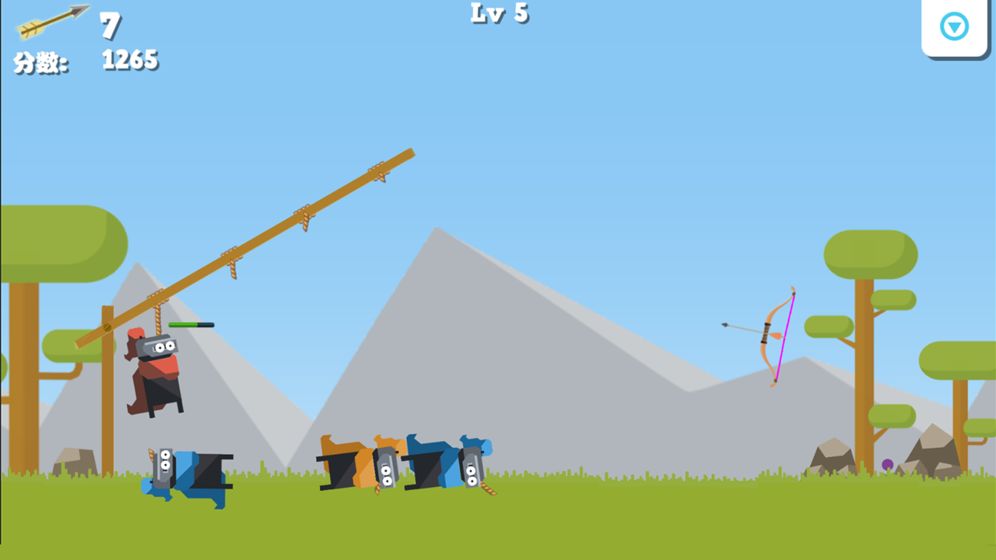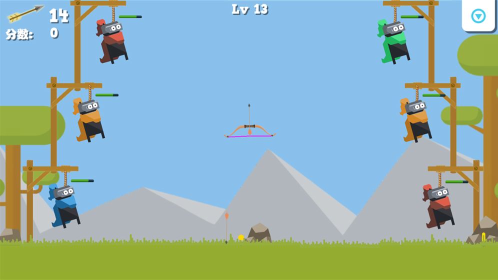 1、在游戏过程当中,完美的利用那些不同的障碍物来帮助自己去更好的射击吧;2、你一定要把那些勒住骑士的绳子射击下来吧,去快速的拯救他们完成任务吧;