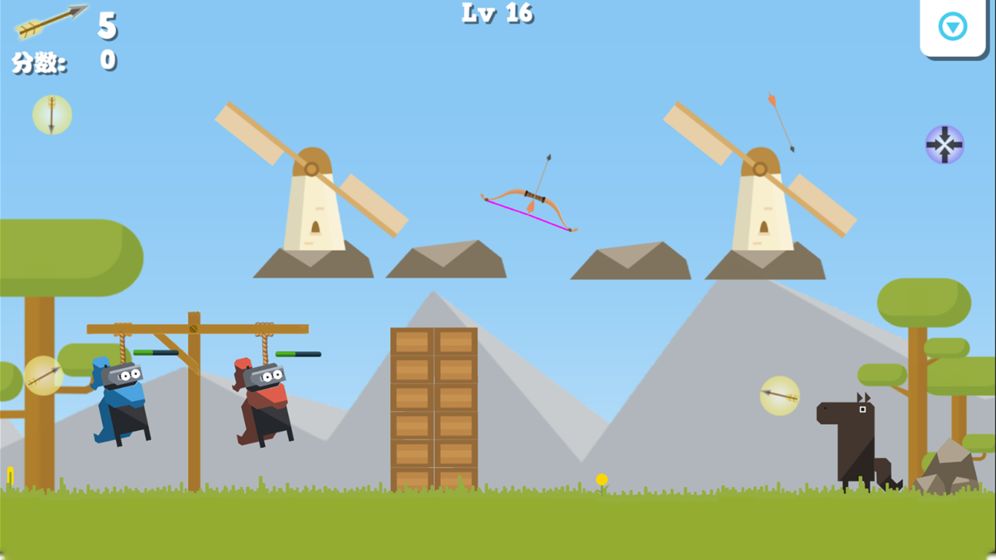 2、你一定要把那些勒住骑士的绳子射击下来吧,去快速的拯救他们完成任务吧;