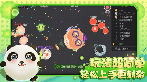 游戏开局首先要寻找到队友(根据图标指示的方向队友移动),找到队友之后,一方将吞噬敌人后产生的的分身和炸刺分裂的小分身给对方吃掉,逐渐壮大。