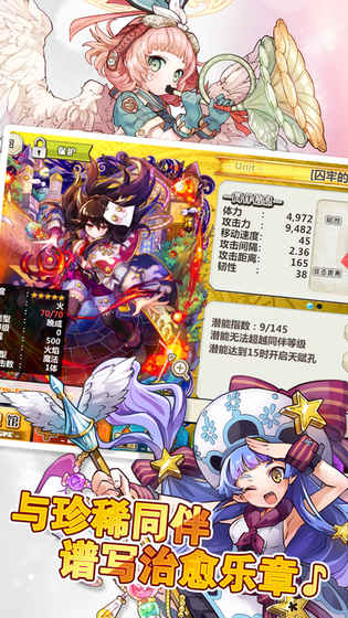 1、梅露可物语愈术士与铃之旋律是乐元素一款即时线型战略rpg游戏!融合了卡牌养成与横向动作战斗的元素,玩家一边要旅程中收集各式各样的魔物成为伙伴,用来组成最大5人的冒险队伍。其中将包含近战、远程、辅助回复等超过200种以上的角色来进行职业搭配、施放各种技能,让玩家在横向的2D舞台上进行痛快的即时战斗。丰富的职业设定和人物角色是游戏的一大亮点。造型可爱,画面清新。