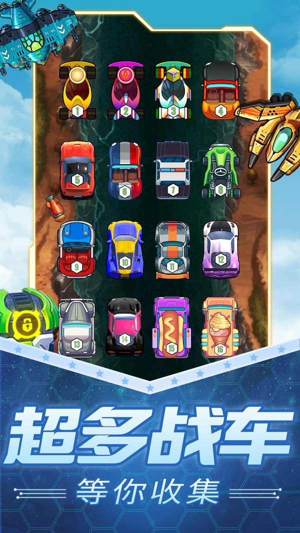 2、具有挑战的游戏关卡,更多强力的汽车,使用金币和资源来升级更好的赛车。