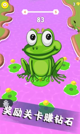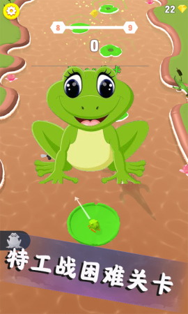 1、控制青蛙在不同的关卡中跳一跳,开启精彩的闯关之旅,很好玩。