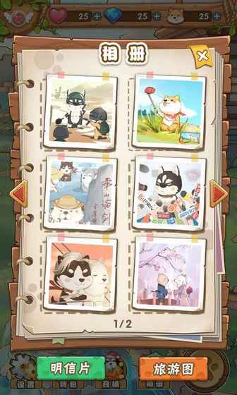 2、养成与搜集,狗子不仅会卖萌打滚,出门游玩还时刻心系在家的主人,旅行的同时也不忘给主人写明信片。