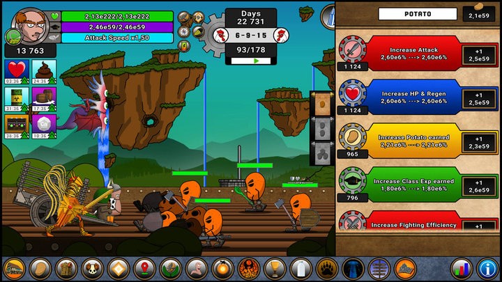 1.在游戏的早期阶段,你将有两种主要货币,土豆和骷髅,你可以用它们升级30多次,