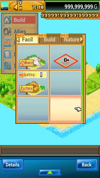 游戏采用的操作方式也是最为传统的开罗经营游戏的按键触控选择,相信很多玩过此类游戏的玩家都知道吧,通过菜单选择来建设各种基地建筑物,开拓领土,寻找各种资源补充自己的经济实力,不断的推进岛屿的文明进程。