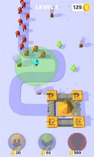 游戏采用简单的放置玩法很轻松很容易上手,你需要安排不同的士兵,放在不同的位置,抵挡敌人的进攻并将敌人消灭去的战斗的胜利,游戏的画风非常可爱,玩法非常简单,比较考验玩家的策略能力。